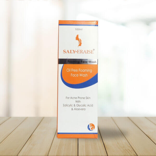 Saly Eraise foaming face wash contains, Salicylic acid, Glycolic acid, Aloe extract. Saly Eraise face wash control excessive oil production n control acne formation.